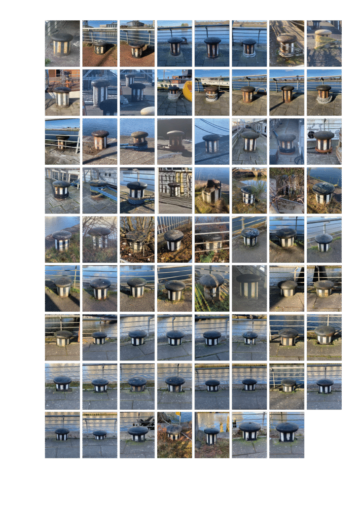 As mentioned, some of the bollards were positioned away from their natural location by the riverside, amongst landscaped spaces further into the festival site. These bollards have been removed from the site, and their whereabouts are unknown. A further twenty three bollards appear to have been painted over since the festival. Taking these into account, the total remaining bollards is ninety-five. ↑